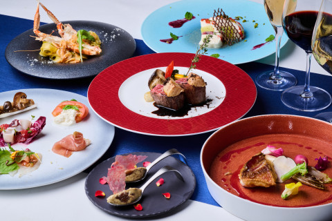 ディナー(12月20日~25日)は、沖縄の恵みとイタリアの伝統を織り交ぜたクリスマス限定フルコースをご提供。金箔、トリュフ、久米島車海老など厳選素材を贅沢に使用した全6品が、特別な夜にふさわしい華やぎを添えます。